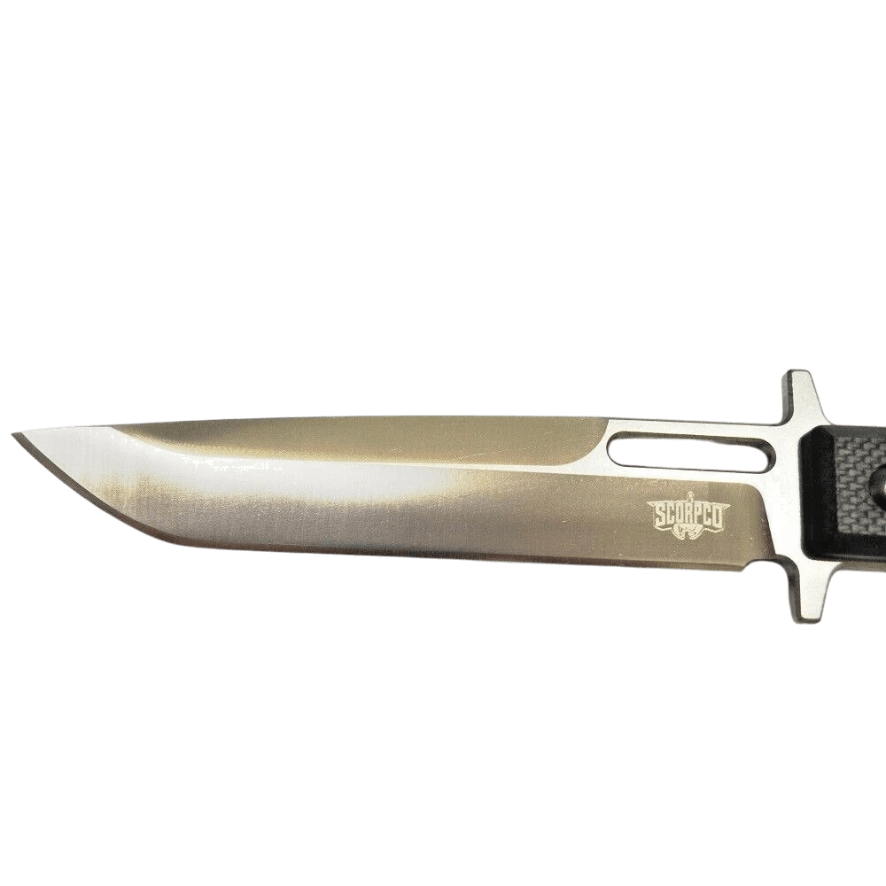 Premium heat treated steel, Introducing the SCORPCO RAZOR SHARP Military Full Tang Heavy Duty Stainless Steel 5mm Kydex Hunting Knife in Army Camo. This high-quality blade is perfect for the avid hunter or outdoorsman. The blade is made from durable stainless steel, ensuring it stays sharp for longer. The full tang design provides extra strength and stability, making it ideal for heavy-duty use. The knife comes with a sleek and stylish G10 handle, which is both comfortable to hold and easy to grip. The handle is also designed to withstand harsh outdoor conditions, making it perfect for camping, hiking, and other outdoor activities. The black colour adds a touch of sophistication to this rugged and reliable hunting knife. Get your hands on the SCORPCO RAZOR SHARP Military Full Tang Heavy Duty Stainless Steel 5mm, Kydex Sheath Hunting Knife today! .